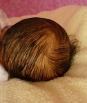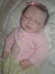 This is my first reborn. He was made from the Zoe (Zoey?) kit that I purchased from Hobby Lobby. I worked on him based on the instructions in the kit and gave the bald baby to my mom for her birthday in July. As I researched more, I asked for him back, repainted him, added hair and weighted him with beads. I entered him in the "county fair" and he won 2nd place. I made several mistakes - including making him too blue with my internal wash. In fluorescent lights he looks a bit morbid! I got the best pics in warm afternoon sunlight. Does anyone have advice on the internal wash?