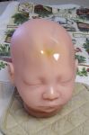 Hi All!! I like my first baby more than the one you are all helping me with. I don't know if it's the sculpt that seemed to make her easier to paint but I seemed to get a better result w/her. She is below... Going back to the baby that needs more work, she has been partially rooted. The quality of the mohair is about as good as it's possible to get. Is it safe to bake her one more time with the mohair attached? I'm assuming you'd just wrap a kitchen towel around the top of her head. Am I right? :0 / Cherie