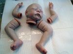 Hi, I am new here. I am working on my first doll. She is Rosie and came with Secrist Kit #3, but looks and feels like a baby boy. I had a mishap with my oven and he melted and now has a tilted head. I am going to complete him anyway as he is a learning experience, the first of many I'm sure. :) I have followed the video in my kit and did an internal purple wash, blushing, and blushing detail. I am unhappy with the arms and leg and am going to strip them and start over. I did veins (without the benefit of the technique sheets, which I have now ordered). I also did some blue shading around the eyes and nose, which was not in the instructions on the video but I had seen in pictures of other "babies". The veins and blue shading may be too dark. He appears pale around the eyebrow area, around the nose and mouth. I have some thoughts on what needs to be done to improve him. I think I need to add some flesh paint, perhaps warmed up with a little yellow ochre ? I think he also needs a light coat of lip color. Of course eyebrows, some moisture on the eyelids and the lips when I reach that point, and eventually hair. Although the kit seems to be a good way to start, I feel I need some tools and paint not included in my kit. I have ordered some Genesis paint which I can mix and thin rather than the premix. Is it ok to put these paints over the baked on premix? Is it ok to put a flesh coat over the blushing detail? And if I paint the eyebrows while waiting for the new paint to arrive, is it ok to put the flesh paint over the eyebrows or do I need to paint the eyebows last? I would appreciate any constructive criticism and knowledge any of you would be willing to share. You will not hurt my feelings. I think your input would be very helpful. The pictures attached were taken outside in natural light though it is a very cloudy, rainy day here. Thanks, Lyn