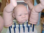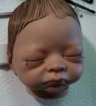 Okay Ladies, so here is my Molly kit still in progress. This is my first attempt at micro rooting with the 43g German forked using the Clover Pen. I'm okay with it as it is much better than the rooting I did on my first two babies. And the eyelashes? Well..... don't like them. I think they are far too long for her age. I'm thinking of trimming them. Thomas is ready and I'm going to start rooting him today. I looked at this bub carefully trying to see where I went wrong. I still see holes! don't know what happened but let me know what you think. Kinda bummed at how she's turning out. I just need to wait for her lashes to set and them assemble.