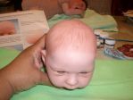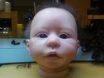 Sorry Sage! I want to hug HIM! He is adorable you must admit. I couldn't find his before and after pics???? I think he looks so cute without the hair so it was a good call. Well, I've finished painting my Molly kit today. Checked on my mohair and "it's in the mail". So I guess I'm done with her until I can get the hair and match it for eyebrows. So here she is....be gentle. BTW my windows is doing some weird contrast thing so I hope it doesn't show here. Critiques and comments welcome.