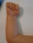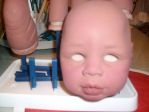 thanks emily , thats jamal he was a kingstate all vinyl baby who now has cloth bodyw/belly plate. his head is hard as rock so i was thinking wig but painting costs less. i believe his before and after pics are in the artist showcase if you want to see the difference. when do we get to see your baby? i'm on pins and needles. sage