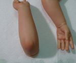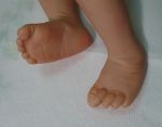 Wow, five babies?! You are busy! They are looking good. I like the coloring on your ethnic babies. The tone is very good! You are also doing well with the painted hair. I wish I could do it but I don't have that steady a hand. She would probably come out with wavy/crooked hair lol. However, I can't see if you have any mottling? I think the flash washed it out. But the tones are good! Putting the heads together was a good idea to see the difference between them. Now that hair, God bless you to do all that long hair. It is coming out lovely. I do have one question though. What is the blue around the fingers and toes of the last pic? I look forward to seeing them finished!