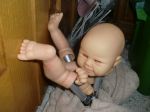 Ladies thanks for the compliments on my babies I have had the worst time with the Kyle kit. The color correction is so tedious but I kept it up and he's almost finished painting. The Kate kit is finished, and tomorrow I hope to go into "labor" and give birth. I tried to make Kyle an AA baby but just can't seem to get him dark enough. You'll see when I take some pics of him. I had to stop for tonight because I was getting so annoyed that he wasn't dark enough I think I messed up his eyebrows. Oh well, he has them now. They're set.