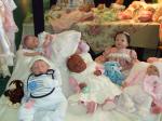 Wow! That looks great! I only ever see reborns online or in my house, so I never get to see a group of them together. I think I am in love with the little girl in the white dress with purple flowers and purple headband. Is that a Marissa May sculpt?