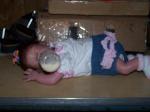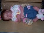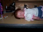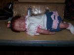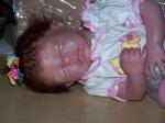 This is my new baby Audrina, she is 16" long and has 3/4 arms and full legs. She is the Teagan kit by Denise Pratt. She has micro rooted Auburn/Brown hair and eyelases. Any comments are welcome. Here she is.