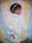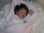 Hi thanks for getting back to me. With my first baby I didn't use Genesis paints and got a very shinny baby but of course I didn't know the term pounce either LOL. I think I jumped in a little too quick the first time before I got enough information. I will attach a pic of her here. The second little guy posted here "Billy" did have his head sanded with a small dremel. I used course sand paper first and then fine. I don't think I really like to do this because it makes a different color in the vinyl, but of course it is covered with hair after. Yes in the duration of doing two dolls I broke about 4 needles. I used size 36 3 barb and tried the 38 but I kinda prefer the 36. The first two babies had lots of hair but I want to try one with just thin scant hair so will probablyuse a finer needle with less barbs. There are just so many ways to try that I will need to do a lot of babies to try all this stuff. I did buy a secrist sculp "Tayla" to try later on when I get better. The little face looks a lot like my grandaugher at birth and Im going to try to recreate her. By the way my first reborn I purchased from a nice lady"Dawn Pecenka - from Once Upon a Daydream Nursery. She did a wonderful job in making a baby that looked like my grandson. After that I was hooked and wanted to try on my own. I have always wanted to collect baby dolls but when you are younger and have a family to take care of and bills to pay its kinda tight money wise. Now that the kids are grown and on their own I have a few more bucks to spend. The lighting for these pics was really bad. I need to take her outside in natural lighting on a nice day and maybe they would be better.....