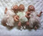 These are the ones I hope I can bring to real life, with Genecis Paints, after I strip them after using heat gun.weirdfaceJune M from Oz    The three pale ones are Missy, Jamie and Gumdrop Dressed in too pale a clothing to bring out their colouring, But you should be able to see the disaster with the heat gun on the six inch triplets.I also noticed that Gumdrop didn't have her lashes. I also know it isn't good photography.