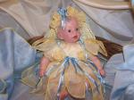 I have just finished my Guppy Fairy and I named her Merriol. I made her clothes and embroidered her wings. Here are some pics of her.