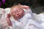 Well here she is at last. She was Born on 17th Sept but I had to sort out my Camera. The wind was blowing her hair a bit. I was unhappy with her colour until I gave her a last wash of mint green. I would do things differently if I was to do her again as she was a difficult choice for a first doll. I love her though.