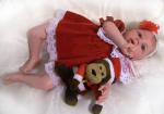 She's realy sweet, I love her red dress also, did you make it. I've cut out a cream christening gown and have a white one to cut out, I want to dress a couple with my own sewing, I don't know why, but even though you have been doing something for years and stop for a while, I get the feeling will I ever get there again. Must be my age.LOL XXX June.