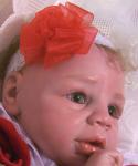 I finished a baby which started out as a Kyra sculpt. I Split her nose when I was opening it, but was able to repair it with super glue and sculpey clay and a lot of work. i woun't be selling her, she will stay with me. Her she is what do you think?