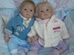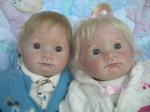 Linda from what I can see they look good,painting and complexion is nice, but I don't see any lashes, which makes them look a bit starey eyed, I would use light brown lashes as this frames the eyes. Blond bends in too much and most real babies are born with long brown lashes or at least all of my grand children, and they still have them. XXXX June.