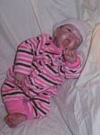 Well, all I have to do is matte varnish her to get rid of the shiny spots and that's it so I thought I'd post since I have to wait on that in the mail. She is my second, my first was Taffy from the mini kits and she didn't turn out so well. I am proud of this one since I am very new to this. Feedback would be nice, but please.... I cry easy She is 19in long and weighs 5 lbs even. Her head is weighted too for the floppy neck babies have, she doesn't have hair yet but maybe someday. She does have tiny eyelashes but no eyebrows (paint in the mail too) but will by the end of the week.