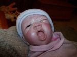 I love the babies with expression on their little face, my daughter was forever with her mouth open and fists in it so I loved this one. Sadly she's not a Secrist baby but a BB baby. No hair yet, but has eyelashes. I want to practice rooting on my daughter's dolls first before attempting it on this one or my next one which is Gumdrop from Secrist. But one day she will have hair.