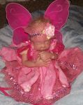 Okay...Little miss Tow head is finished...I think. I always say that and then a week from now I will take her apart for one reason or another. Also I found some really cute little outfits. I put them on my twins to show them off. Oh...I forgot I wanted to show my fairy baby in here OOAK tinkerbell dress done by Celia's Bellabambino couture. Think I spelled that right.