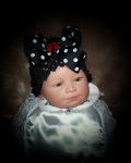 LOL....That's l7 inch Missy wearing the lady bug hat with the red and black dress.  I did NOT do the polar bear picture.  I only took a picture of the picture....  that sounds weird, but I did.  I was having a all niter playing with my camera, so I got bunches of pictures out.  I put my oldest son when he was 13 months old next to his daughter at about 7 months old and put did them up in one frame.   Then I got a bunch of old pictures of Terry (my youngest) when he was about 9 or 10 and he was all into stud bracelets, bandanas wrapped around the upper leg over jeans..around his head...all rock star stuff.  lol...so one day he was acting like he was doing the singing as some music played..he was getting down with whatever he was using for a microphone.  Long hair..etc.  hehe.  So I got those four pictures and did them and mailed them to his wife...BTW..His wife is married to the PASTOR.  But Terry writes music, plays lead and sings lead