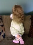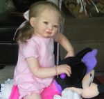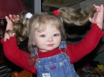 My newest toddler is Celeste. She's 28", and I special ordered 13" long mohair, and microrooted from the very tip ends to achieve her long locks. I also hand rooted her upper & lower eyelashes (that's how I do all my open-eyed girls now). She was way fun to create, and even more fun to do photo shoots of her.