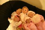 Gail, thanks so much for sharing your babies' photos. I love the one where all the babies are sleeping except Phoebe. They almost look like they could be quints. Is this art imitating life, or what? In real life there's always one baby in the nursery that is awake when all the others are sleeping.