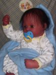 i'm so glad you two like her,there's realy no secert-- you just take 1cap pink,2 caps tan and 1 or 2 caps wine liqued ritz dye. easy on the wine cause if you leave baby in to long it'll be mite redder then you want. i used the ethnic color for aa's found on secrists special techniques dvd to paint her. she's fun cause she can be an aa ,hispanic or native american . if you haven't dyed a baby before, use one thats not important and don't get in a rush.but i will say the hotter the dye bath the sooner the vinyl will take the color.it'll still take awhile, to check color pull a limb out and dry it to see color. as vinyl drys it'll darken a little so go a little lighter then the color you want. let me know if you do a baby this way i'd love to see it. again thanks for likeing her sage