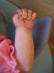 Sounds perfect to me. I wished I had a balcony. Your other doll is Dafne right? I have done her. I stated before that I stated with air dry paints, but moved on to Genesis. I bought a set of premixed paints and I use odorless mineral spirits (wal mart or whereever I go). I have used alcohol wipes to wipe off the dolls. It dries quickly and removes any residue. Some kits I wash and some I don't depending on where they came from. I don't think I washed the quads (yes I have them little buggers too) After all is done, I think Kirstin is the cutiest. She looks afraid. or something. Anyway...I put a dab of paint on the pallet and I put my mineral spirits in a small plastic container that I just squirt some out. I then mix with the brush until it's thin enought and then I take a brush and brush it onto a sponge either cosmetic or I like the fine type of sea sponge. I just start with veins and dab my brush...then I roll it and dab any excess off..and then start. If the veins are too big or too much paint just dabb it right away with a cosmetic sponge dipped into thinner and dabbed. If the blue line is too wide, you are putting too much pressure on the brush..just lighten the touch and that will make them more realistic looking. I just can't wait until you get your first piece done. Aand Lord knows if you mess up...so what? It's not the end of the world...gosh I've messed up so much it's aweful. Hey??? does anyone want to buy a big laundry basket full of arms and legs and heads that need to be fixed? I would be willing to get them off for just S&H lol.