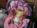 Something went wrong with the Secrist foundation baby skin...it would not set right at first..final I had to apply 3 layers of scerist foundation baby skin and 2 coats of bb baby skin...ofcoarse in between was veining(very lite),purple wash at the very start,mottling and blushing..she's not finished yet...half ways to go..I started the painting at 5:20 pm and at 8:40 pm I got the head and limbs nearly done with painting other than a bit more touching up blending and deeper detailing..
