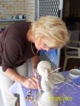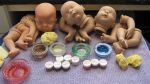 Got some steel frame stand, so put it to good use in my laundry, these are some of my new kits.   The first six photo's are of some of my older students from my Porcelain Doll Making Classes, 5/6 yrs ago. Now to find the one with the kits............................Found it, these are also the 2 Conners as WIP, plus Naomi as WIP. Picture is of Rosie Secrists Sculpt as Mylee Rae, changed her cloths, pics still not to good on the baby front.     LOL      XXXXX      June