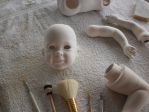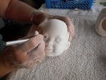 The porcelain greenware (raw before baking in a kiln) is very fragile. If you touch it too hard you will leave fingerprints in it. I used to use cotton balls to clean mine with. And I used silicone eyes (about $35 per pair) or Secrist Real Eyes.