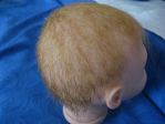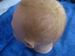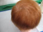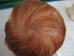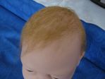 I used the Angelic Touch mohair that Secrist carries and it was the light brown color. I carefully washed it with Johnson's baby shampoo as I do all my babies, then used a spray on conditioner and curl activator. Towel dried it, combed carefully (as I did not glue the hair inside), then cut and styled it. To get that "not cut" look I used a razor comb. It makes the ends look like they just grew like that naturally and doesn't have that blunt cut look. I got the razor comb at my local beauty supply.