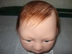 I used the Angelic Touch mohair that Secrist carries and it was the light brown color. I carefully washed it with Johnson's baby shampoo as I do all my babies, then used a spray on conditioner and curl activator. Towel dried it, combed carefully (as I did not glue the hair inside), then cut and styled it. To get that "not cut" look I used a razor comb. It makes the ends look like they just grew like that naturally and doesn't have that blunt cut look. I got the razor comb at my local beauty supply.