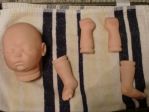 When I paint, I do the internal wash, just near ears, nose bridge, and behind the mouth. Then I do a couple of layers of flesh, bake all layers in between each coat of paint, THEN I do the veinns, do them thinly and in small sections so they are easy the wipe with your make up sponge, you can thin them and make them lighter in color, place more layers over the veins, do your blushing and mottling some blush color and some Periwinkle Blue, if you want the new baby look or chilly look. When your happy with that, you can put birthmarks, scratches, and milk spots. When I do the milk spots I use a broken rooting needle and get a small dot on the end and place it where you like to. Nose, Chin, Forehead and cheeks. sometimes I have seen them blotted, but I prefere( myself ) the little raised spot, then i do a small red circle arround it. , Don't forget your nail tips. thin as newborns are just barely there as with the veind. Creases are done before the blushing, sorry. the soles of the feet are done as a C----Under toes, sides and heal................ Hope this is a help. IN the Secrrits tutorials there is some great stuff, also their DVD on painting and on rooting. I think they are a good investment. XXXXX June.