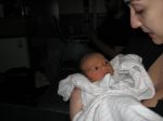 Congratulatios Grandma !!!! What beautiful pictures! The first set of pictures the mom and auntie are real nice pictures . Your picture came out great too! What a nice feeling to hold your grandchild for the first time. Oh I just love all the hair I love to see a baby with hair. So glad mother and baby are doing well. Have a good trip back home.