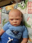 i finished this lil guy at 2 in the morning and by 1 pm he was with hiis new mommy.........he's a sweet pea awake , he has handrooted alpaca lashs and blonde painted hair.......sage